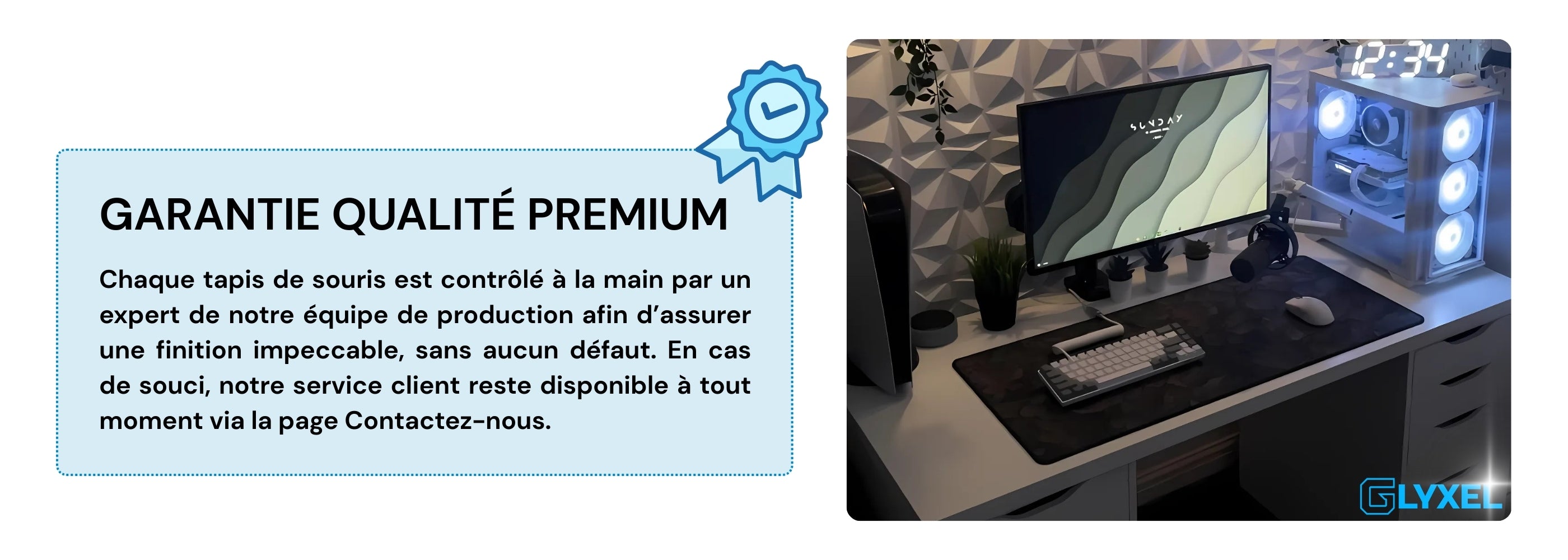 - Designs exclusifs Glyxel : un setup unique, sans compromis entre style et performance.
